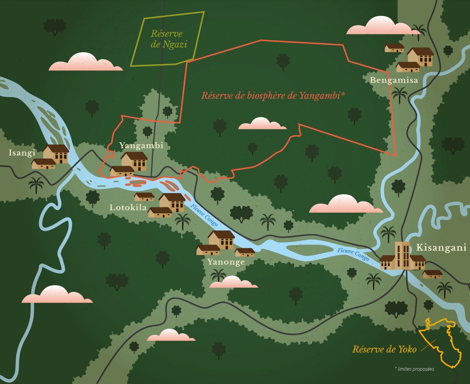 RDC, Tshopo, territoire d’Isangi. A califourchon sur le fleuve Congo, le paysage de Yangambi est très connu pour la Réserve de Biosphère de Yangambi, 25 milles hectares de forêts, située dans la cité de même nom, en aval du fleuve Congo, à cent kilomètres de Kisangani. Depuis dix ans, des organisations environnementales y affluent pour lutter contre la déforestation. Des projets aussi longs que courts destinées aux activités économiques paysannes afin de réduire leur dépendance des forêts.